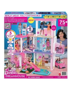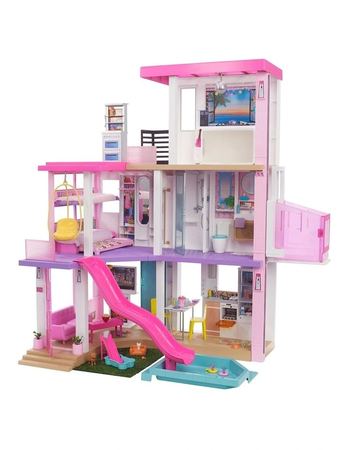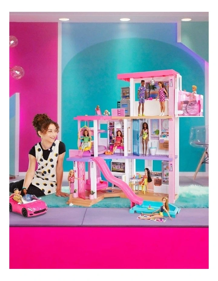 Kids can play out any story, from an ordinary day to the ultimate get-together with a kitchen, living room, dining room, bedroom, bathroom, pool, balcony, party room and more. Lift and lower Barbie doll and her friends in the working elevator, fill the pool with water to make a splash, soak up some sun on the third-floor balcony and rooftop deck, and host a pet playdate with a puppy pool and slide. Storytelling accessories — over 75 of them! — feature realistic touches and textures that bring any Barbie story to life. With cool customisations and so many storytelling opportunities, kids ages 3 years old and up will move right into the Barbie Dreamhouse and make it their own!
