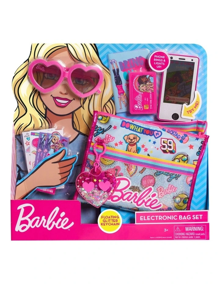 Β Kids can call their friend Barbie on the cellphone that rings and lights up. As they plan their next shopping trip, they can get ready in style with the mirror and heart shaped sunglasses. This fab set also includes a notebook and stickers empowering kids to bring on the day.