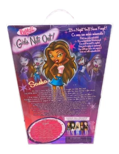 From the stylin’ outfits to the glamorous accessories, theyre near exact replicas of the iconic originals. Now in special edition packaging with a 21st birthday edition motif! Each doll includes 2 outfits one for a semi-formal party, and one for chillin out at the after party. Also includes a purse, sunglasses, 3 bracelets, 2 pairs of earrings, necklace, lip gloss, nail polish, 2 makeup pallets, makeup brush, 2 sets of hair clips, 2 pairs of shoes and a brush. Step out with Sasha and the rest of the Bratz Girls Nite Out! Collect all 5 Bratz Girls Nite Out dolls– Cloe, Yasmin, Jade, Sasha and Dana. Available now!