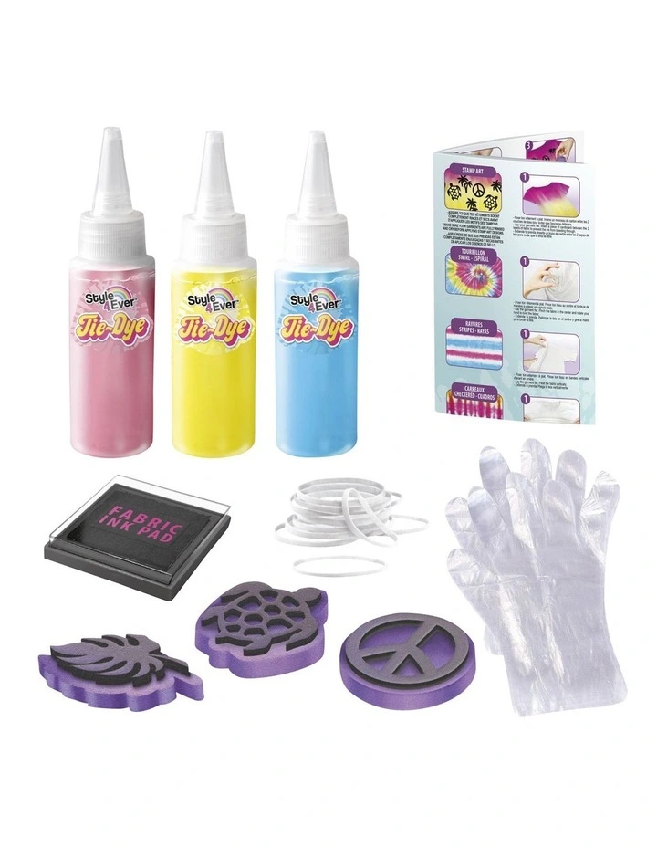 Β This Style 4 Ever Tie-Dye bucket kit includes a reusable plastic storage bucket with enough tie-dye supplies to create up to 9 projects and spend hours creating awesome designs on your accessories.Β