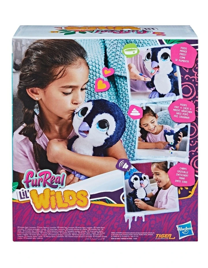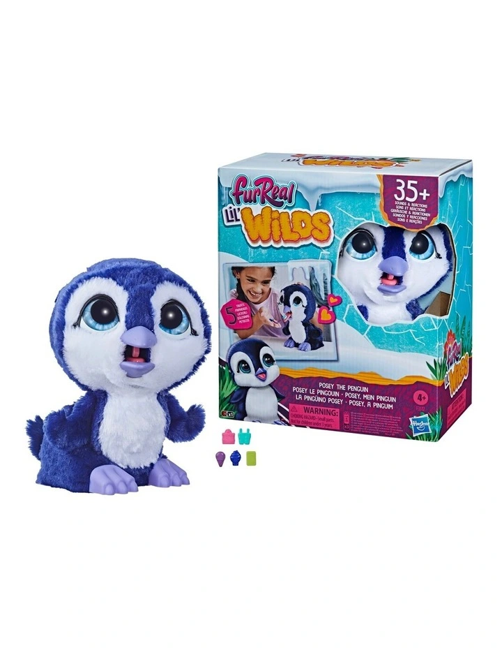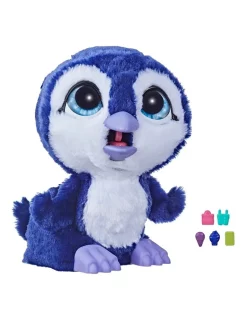 The furReal Lil Wilds Posey the Penguin Interactive Animatronic Plush Toy is an exotic pet that kids ages 4 and up will love to feed, play with, and snuggle with. Imagine having an Antarctic penguin as a pet! Kids can feed her with her 5 treat accessories, which go right down her poop chute kids just open the back door to retrieve them and start the feeding fun again!