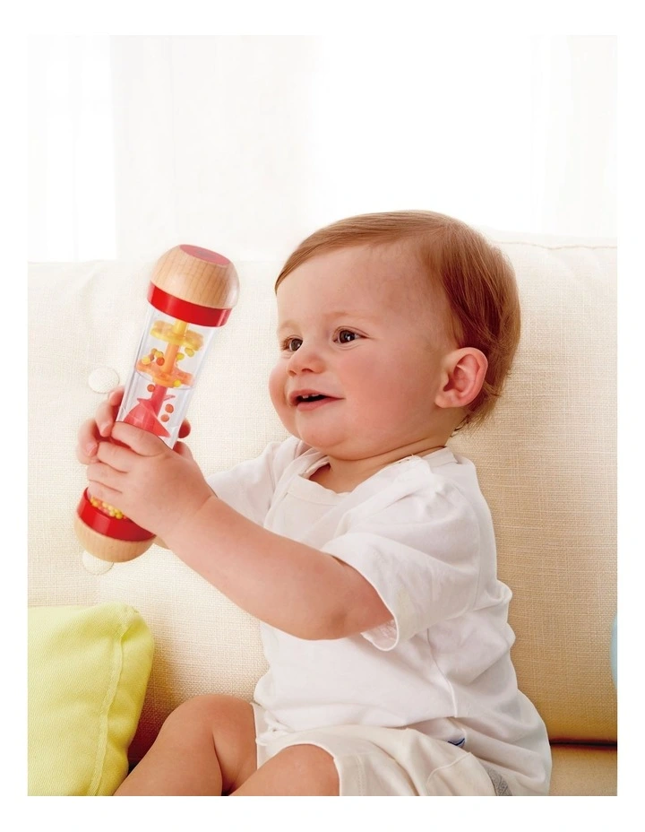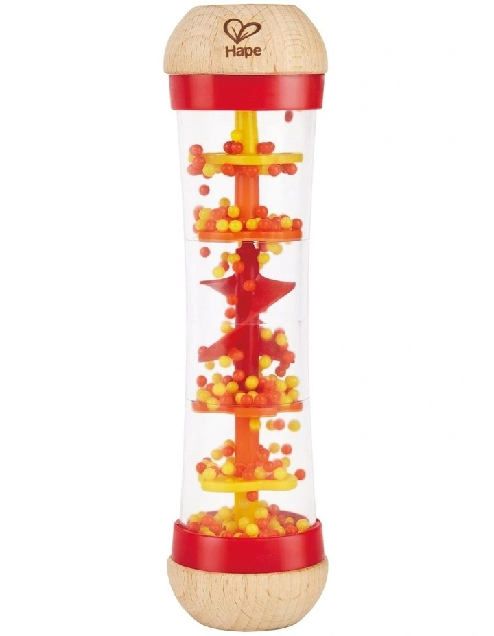 Turn this rain maker over and stimulate senses with vibrant trickling beads and soothing raindrop sounds. Perfectly designed shape makes it easy for a toddler to hold. With the easy grip, you can easily switch this toy into a shake and rattle activity. Great for sensory development.Β