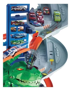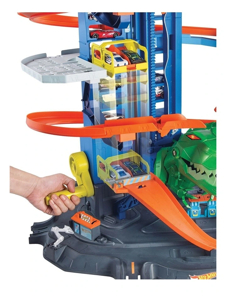 New for 2020, it’s the ULTIMATE challenge in the TALLEST Ultimate Garage so far, offering endless storytelling and vehicle action play! This enormous playset has parking for up to 100 vehicles and a surprising Robo T-Rex nemesis that fuels kids’ imagination! Kids take vehicles all the way up in the kid-powered two-car elevator. They can race down through the multi-level garage and experiment with multi-play mode for continuous thrills! Connects to other Hot Wheels sets (sold separately) and includes 2 Hot Wheels 1:64 scale vehicles and a feature for Hot Wheels id action, too! Plug in the Hot Wheels id Portal (sold separately) to unlock the additional play experience: scan a car, race opponents, escape from Robo T-Rex and win!