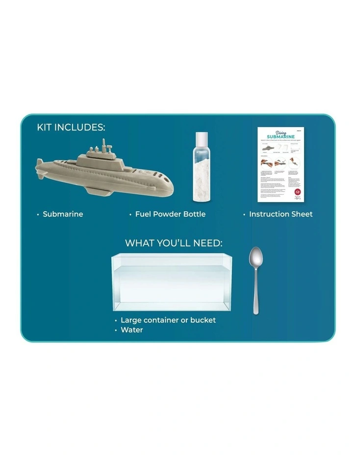 Crew set the depth at 30cm. Dive! Dive! Dive! Learn about the science of acid-Base reactions and buoyancy while splashing around in the bath, with your very own submarine! Full instructions included. How Does It Work? When you ll your Submarine with Fuel, and place it in the water you create a chemical reaction.