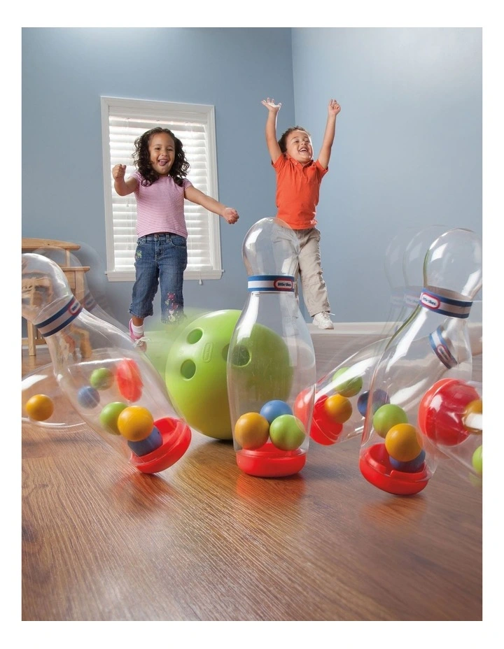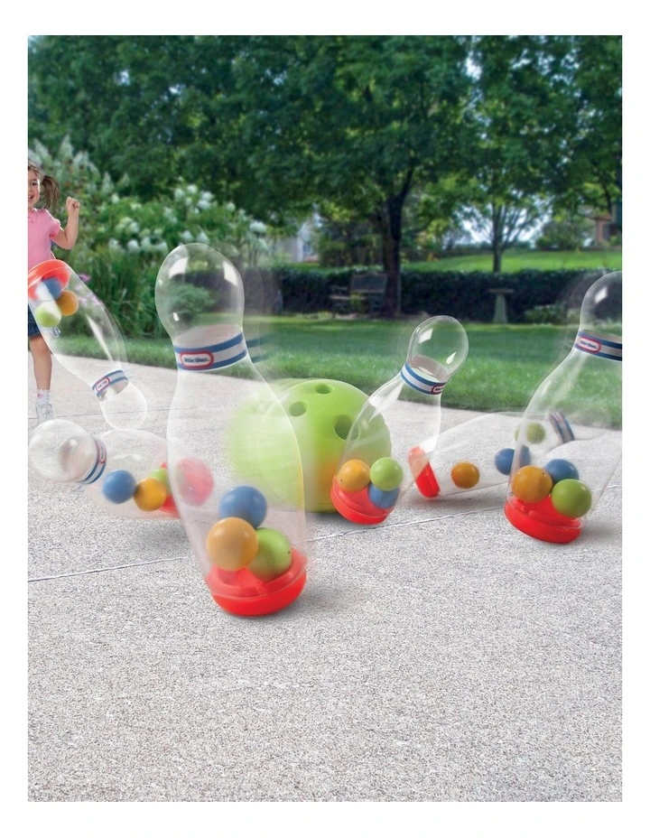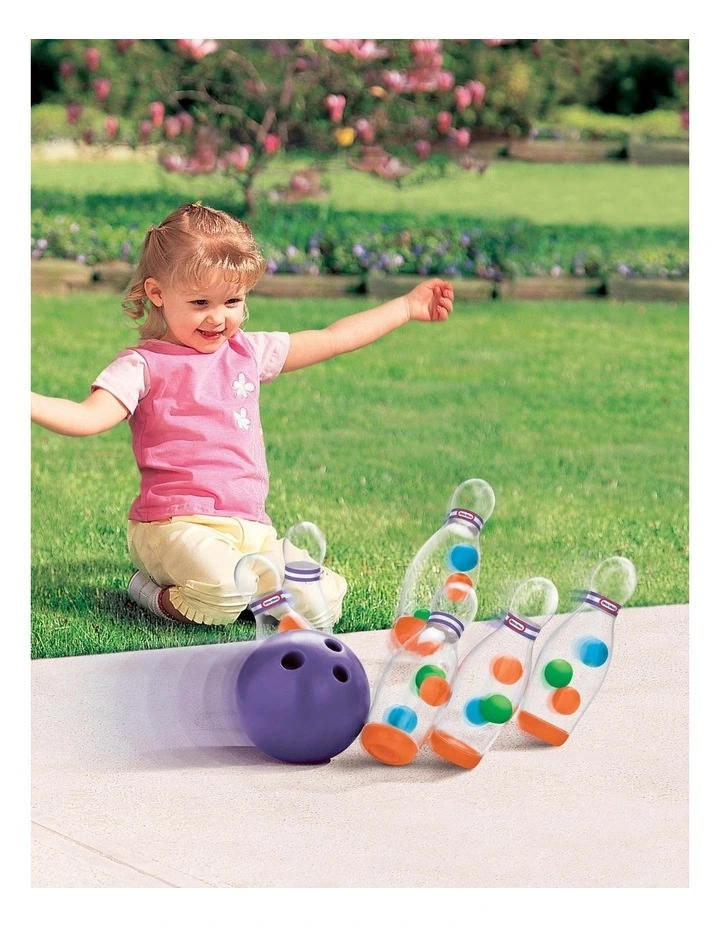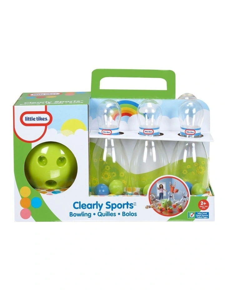 Your kids will be bowled over by fun with the Little Tikes Clearly Bowling Set. This set is a perfect addition to any kids sports items. Kids will get hours of enjoyment indoors or outdoors from setting the pins up and then knocking them down. The pins have colourful balls inside of them to further enhance the playing experience with sound effects.
