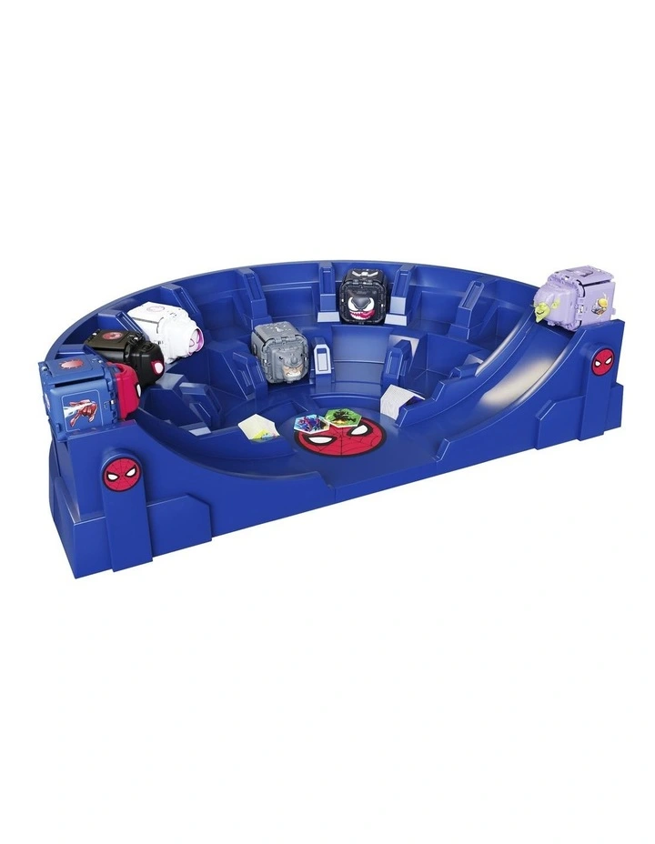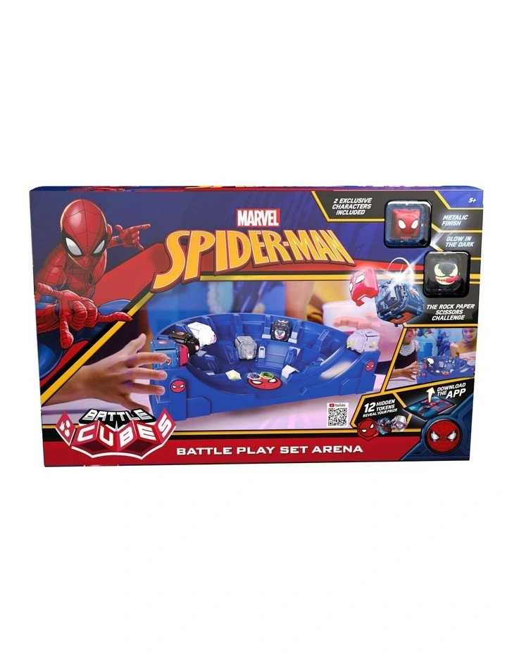 Tokens are included with each pack- trade them or win by playing. Every token is a puzzle piece. There are 12 rare tokens to collect and 48 tokens to collect and play. The Battle Cubes Spider-Man play set arena includes 2 exclusive Spider-Man Battle Cubes- Metallic Spider-Man and Glow Venom.