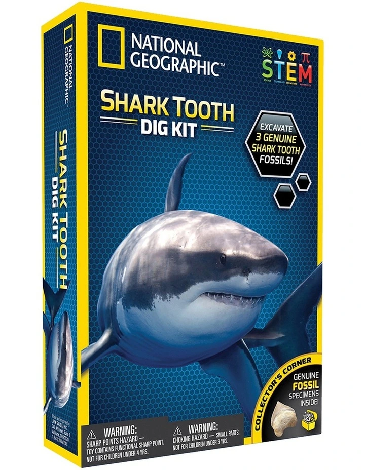 National Geographics Shark Tooth Dig Kit lets children dig up and explore fossils from three different species of shark.