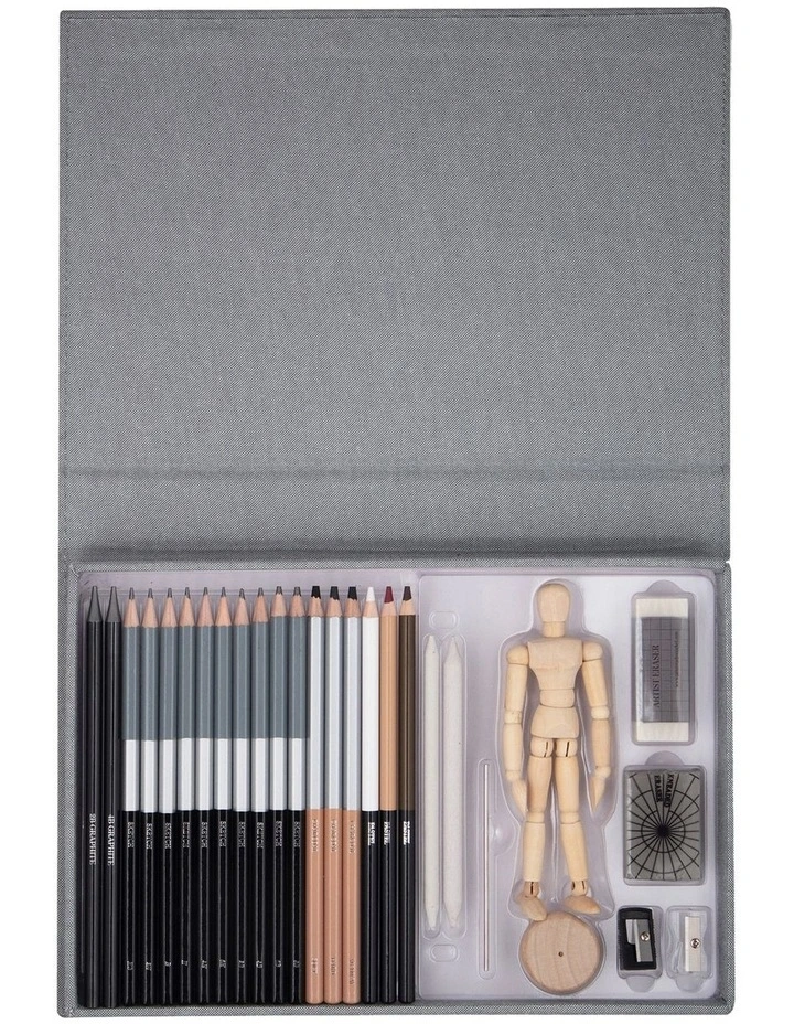- 10 lead pencils in varying hardness ranging from HB to 8B