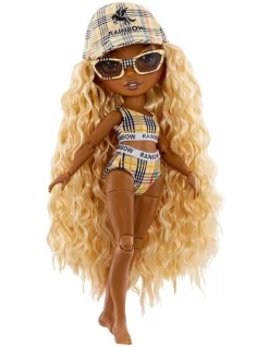 Rainbow High inspires creativity. Meet the students of Pacific Coast High, the most elite fine arts school on the west coast. Here the days are sunny and the classes are poolside. Each themed playset comes with complete doll outfit, signature must-have poolside accessories, and a bonus feature, interchangeable legs.