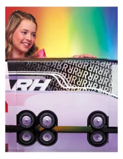 WHAT’S INCLUDED- All the Rainbow Vision tour essentials such as Expandable Tour Bus, DJ Booth, 2 DJ Speakers, DJ turntables, laptop, 4 working spotlights, Vanity lights, vanity chair, eyeshadow palette, 3 batteries, and more. Recreate all your favourite Rainbow Vision storyline at home! Dolls Sold Separately.