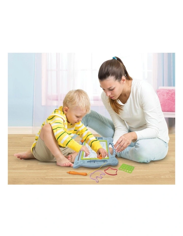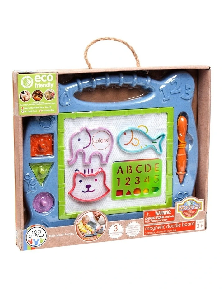4 colors magnetic magic doodle board and a tethered pen.Β