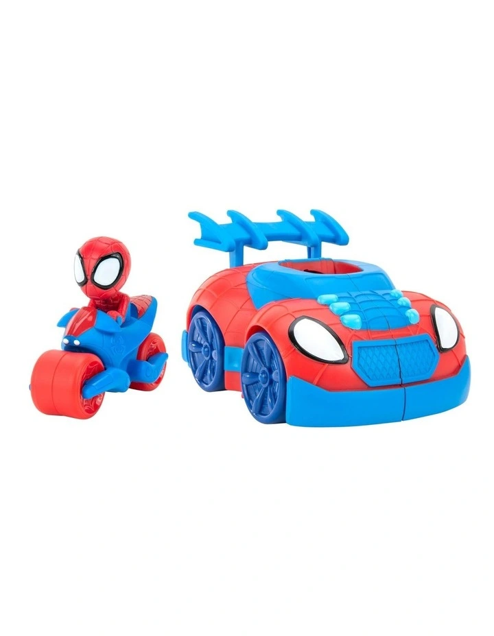 The Web Strike 2-in-1 Feature Vehicle is 2 vehicles in one! Press down on the back of the vehicle to launch the cycle into action the front end of the vehicle splits open!