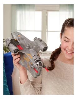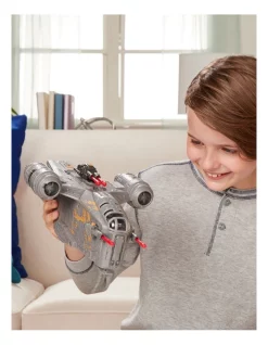 The Razor Crest is his trusty transport and living quarters.Β Blast off into a dangerous galaxy with The Mandalorian and Grogu aboard Mando’s iconic ship, the Razor Crest! Imagine action-packed battles in the outer reaches with the Star Wars Mission Fleet Razor Crest Outer Rim Run Deluxe Vehicle.