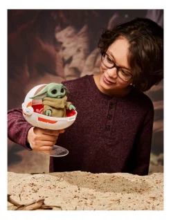Kids ages 4 and up can imagine taking Grogu (The Child), affectionately referred to by fans as “Baby Yoda,” on galactic adventures or recreate their favorite Star Wars moments. Tap Grogu’s head, flip him upside down, lay him on his back, or place him in his hover pram to unlock more than 25 sound and movement combinations. Listen to Grogu giggle, watch him move his head, and activate fun flying sounds when Grogu moves with his hover pram.