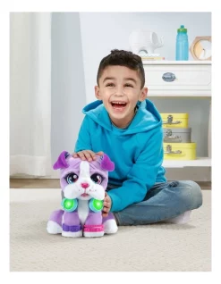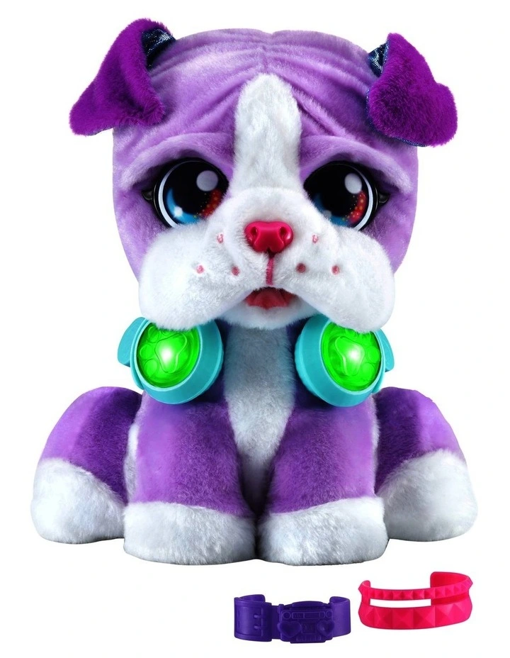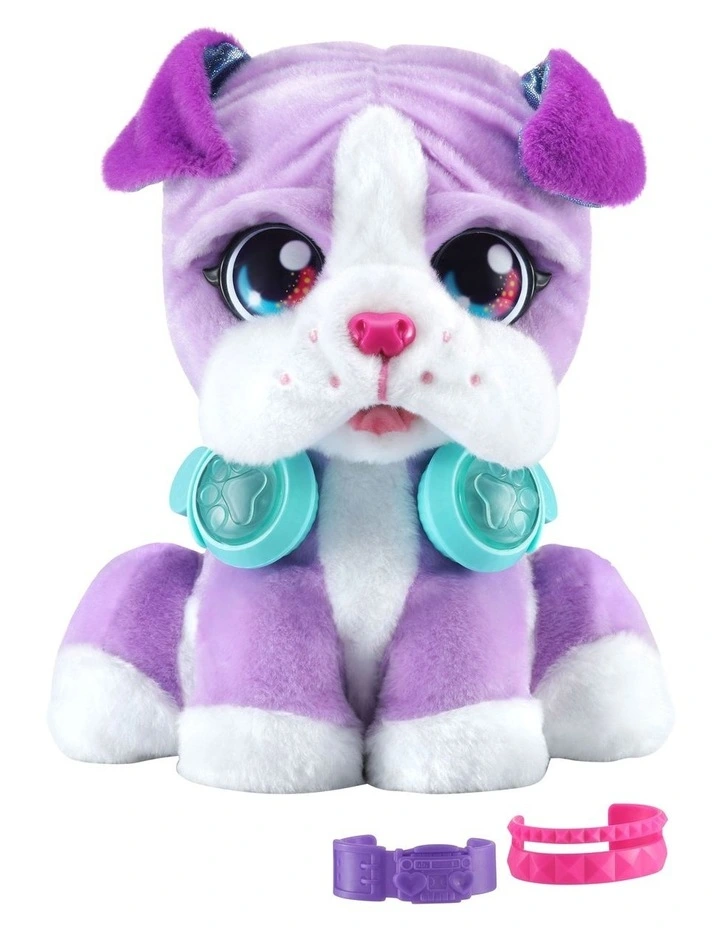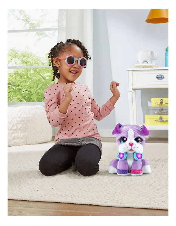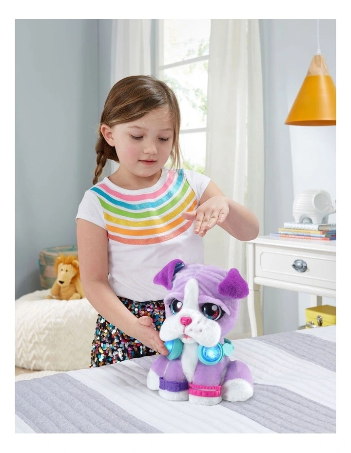 DJ Beat Boxer is a pawsome new musical friend. DJ’s a music-mixing pupper, so scratch her head, boop her nose, shake her paw, press her ear or push the buttons on her headphones. Each interaction adds layers to the music so you and DJ can create a new song together! Press her headphones buttons to start a rhythm and add in backbeats or harmonies. Add more cool sounds like record-scratching sounds by scratching her head or touch her nose for an air horn effect. You can even press DJ’s ear to record a quick phrase to drop into your song. Her head will nod along to the music while her jowls flap to the beat. Give DJ lots of love and shell bark, sneeze and more. Cuddle DJ or create a mix that moves you!